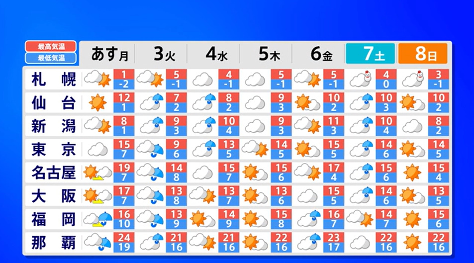 3月に入り、青空が広がる気持ちの良い日になりましたね。今日は東京マラソンが開催されるということで、多くのランナーがこの絶好の天候の中で力を発揮するのが楽しみです。また、西から東にかけて花粉が増えているようですが、フルマラソンに挑む選手たちがこの挑戦を乗り越えられることを願っています!