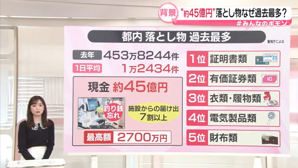 @news24ntv都内の現金落とし物“約45億円”過去最多に 件数も最多…どんなものが? 横断的問い合わせサービス登場【#みんなのギモン】 news.ntv.co.jp/category/socie…