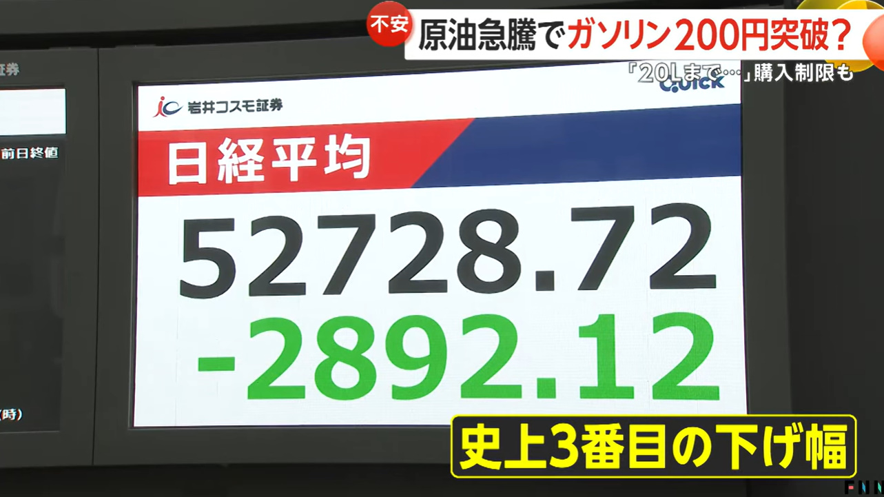 社会問題(国内) 200円突破?? マジでガソリン価格がヤバい??購入量制限も⁉戦争で石油製品高騰か⁉ 2026年3月10日 原油急騰により、ガソリン価格が200円を超える恐れがあり、高市首相は電気・ガス料金対策を検討中。国民生活への影響が懸念される。 原油急騰に伴い、ガソリンや石油製品の価格が急上昇しています。掲示されたスタンドでは200円を超える価格が見込まれており、この影響は私たちの日常生活に大きな打撃を与えています。高市首相が示した通... あいえふ