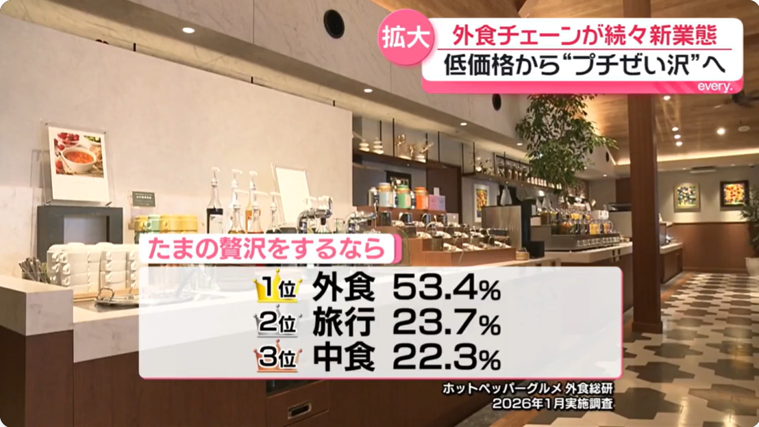 物価高で外食チェーンが「プチぜいたく」をテーマにしたプレミアム戦略を展開。新業態登場で選択肢が増え、価格競争にも影響。