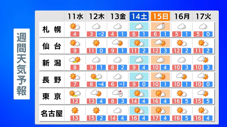 全国的に晴れ間が戻るが、関東甲信地方ではにわか雨や雪の可能性があり、再び東京でも雪の恐れ。外出時は注意を。