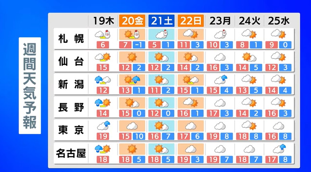 雨は朝までに多くの地域で止み、次第に天気は回復して日差しが戻る見込みです。関東南部は雲が残りやすく、北陸は雨が続き、北海道では雪や強風に注意が必要です。気温は全国的に春らしく暖かくなりますが、北日本はあまり上がらず、夜は冷え込む見込みです。3連休も暖かさは続くが、初日は北日本で荒れた天気となり、関東でも夕方以降にわか雨の可能性があります。