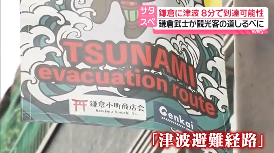鎌倉市では、地震後最短8分で津波が到達する危険がある中、土地勘のない観光客の迅速な避難を促すため、小町通りで新たな防災対策が始まりました。街灯に津波避難方向を示す旗を設置し、視覚的に分かりやすく誘導する取り組みで、地元商店会や学生団体が協力して進めました。背景には過去の地震災害への危機感や、実際に避難経路が分かりにくいという課題があり、防災意識の向上も目的としています。