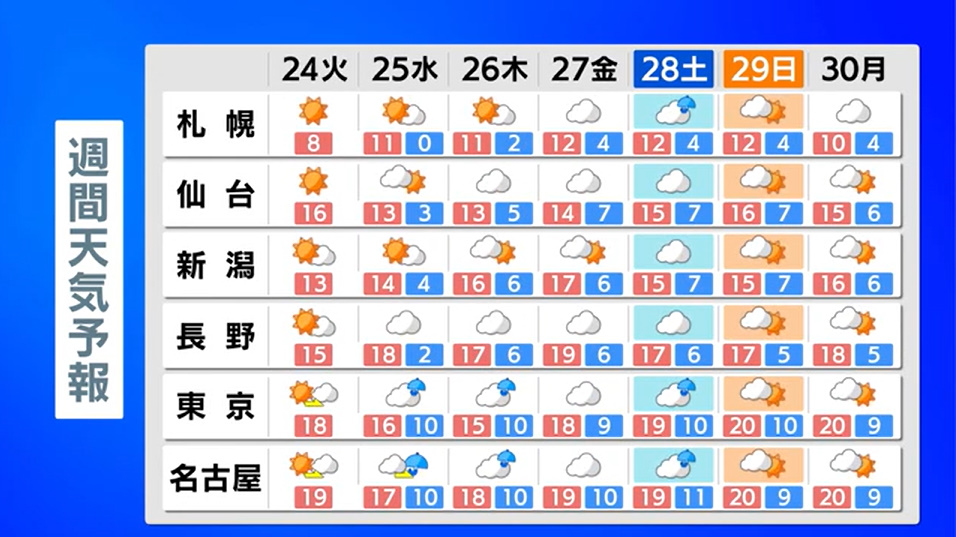全国的に晴れて暖かくなり、さくらの開花が進む見込みです。沖縄や奄美は雨が降りやすく、夜には九州でも雨となります。あす以降は西日本・東日本で雨の日が増えるため、きょうの日差しを有効に活用するとよいでしょう。