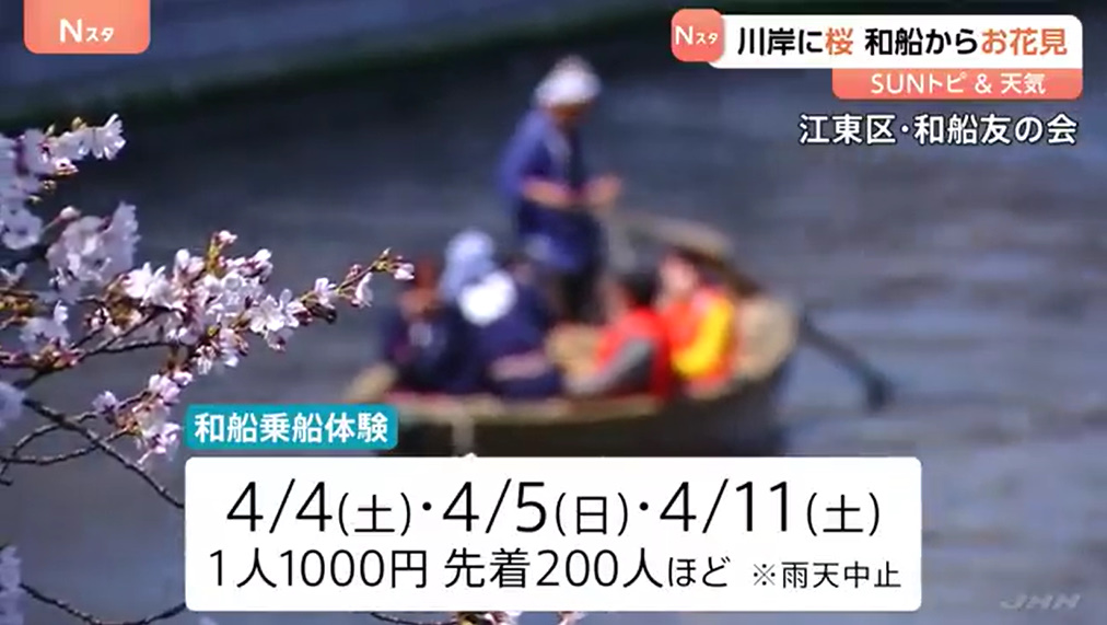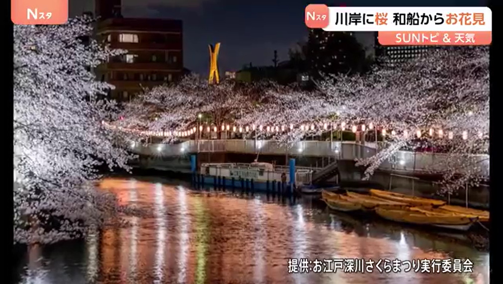 トピック(国内) 国内 未分類 社会(国内) 和船から花見⁉春爛漫⁉江戸情緒が満喫できる東京の満開の桜を川から楽しむ?? 2026年3月30日 2026年3月30日 あいえふ Twitter Pocket 東京で桜の満開が発表されたことを受け、門前仲町でお花見の様子が紹介されています。大横川沿いでは桜が5~6分咲きで、露店の深川めしや船上からの花見が楽しめます。約200本の桜が並び、のどかな雰囲気の中で観賞でき、夜はライトアップも実施。「お江戸深川さくらまつり」は4月12日まで開催されており、今後も花見を楽しめると伝えています。 <関連する記事> 東京満開 にぎわう桜並木、川岸に桜 和船からお花見【SUNトピ】 - TBS NEWS DIG (出典:TBS NEWS DIG) <関連する画像> (出典:https://newsdig.tbs.co.jp/) <関連する動画> 東京満開 にぎわう桜並木、川岸に桜 和船からお花見【SUNトピ】|TBS NEWS DIG (出典 Youtube) <X(旧ツイッター)の反応> TBS NEWS DIG Powered by JNN @tbsnewsdig 東京満開 にぎわう桜並木、川岸に桜 和船からお花見【SUNトピ】 ift.tt/6dEYnM3 (出典 @tbsnewsdig) ピックアップ記事 Facebook Twitter