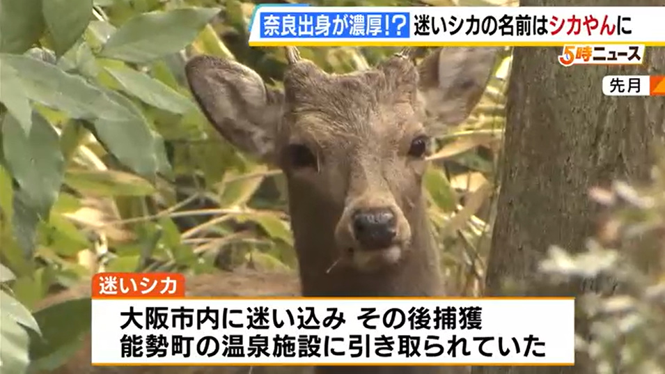 @feagults「シカやん」名前決定 奈良から来た?大阪市内に迷い込み捕獲されたシカ 引き取られた大阪府の温泉施設で命名式 news.mixi.jp/view_news.pl?i…