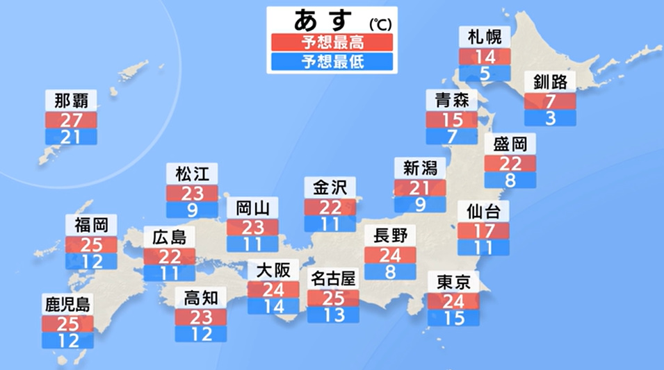 @tbsnewsdig西からゆっくり下り坂 夜は沖縄や九州中心に雨 夜遅くに四国や北海道でも 名古屋や福岡、鹿児島25℃予想で夏日になる所も【あす6日の天気】 ift.tt/wzDgtJE