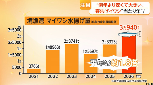 春のイワシは「春告げイワシ」と呼ばれ、脂がのって身が締まりおいしいのが特徴です。2026年は豊漁で例年より安く大きい“当たり年”となり、価格も下落しています。サバやサーモンが高騰する中、手頃で人気が高まり、販売やレシピ検索も増加しています。さまざまな料理に使えることから、注目が集まっています。