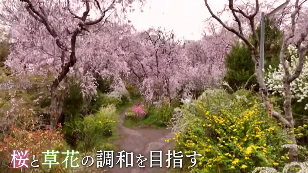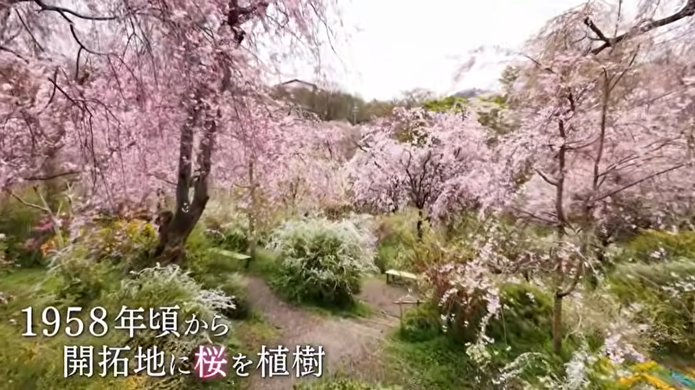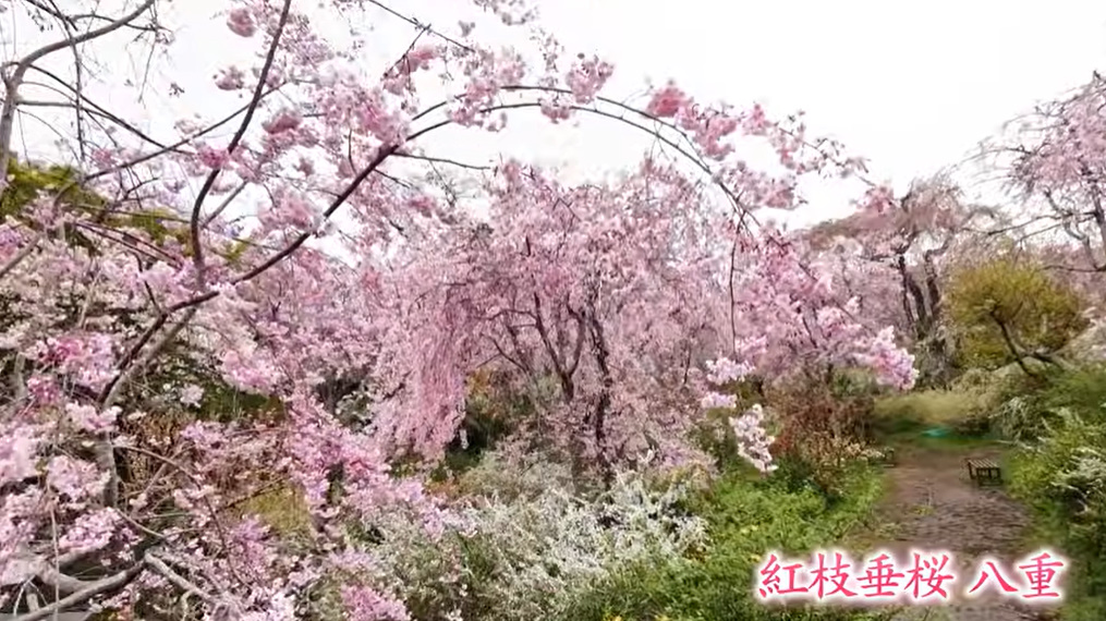 京都市北区の山間にある「原谷苑」は、アクセスが難しいことから“隠れた花の里”と呼ばれる桜の名所です。1958年頃に開墾され、3代にわたり整備されてきた結果、現在は約20種400本の桜と多くの季節の花が咲く庭園となりました。春は時期ごとに異なる桜が楽しめ、4月7日には八重の紅枝垂れ桜が満開でした。多彩な草花と桜が織りなす独自の美しさが特徴で、雨天の中でも訪れた人を魅了する景観が広がっていました。