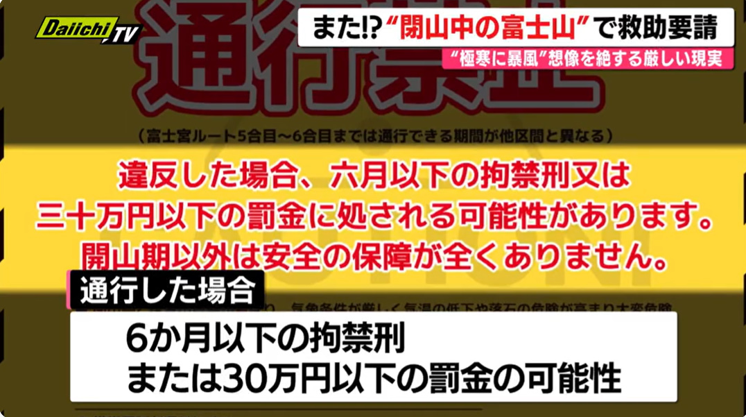 @loa1530富士山の冬季登山禁止は静岡市長的には全面禁止って意見出すのは分からなくもない。 ただ、まず税金払ってるわけでもない外国人登山者等の夏季冬季に限らず遭難時料金請求ルール、そして冬季は入山計画書提出、申請制度を検討すべきなのに 色々と細かい事すっ飛ばしてる感はある。